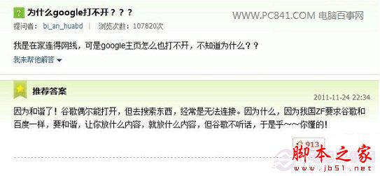 在百度知道中,有一个比较经典的回答,这个回答很好的概括了谷歌经常打不开的最直接原因,如下图: