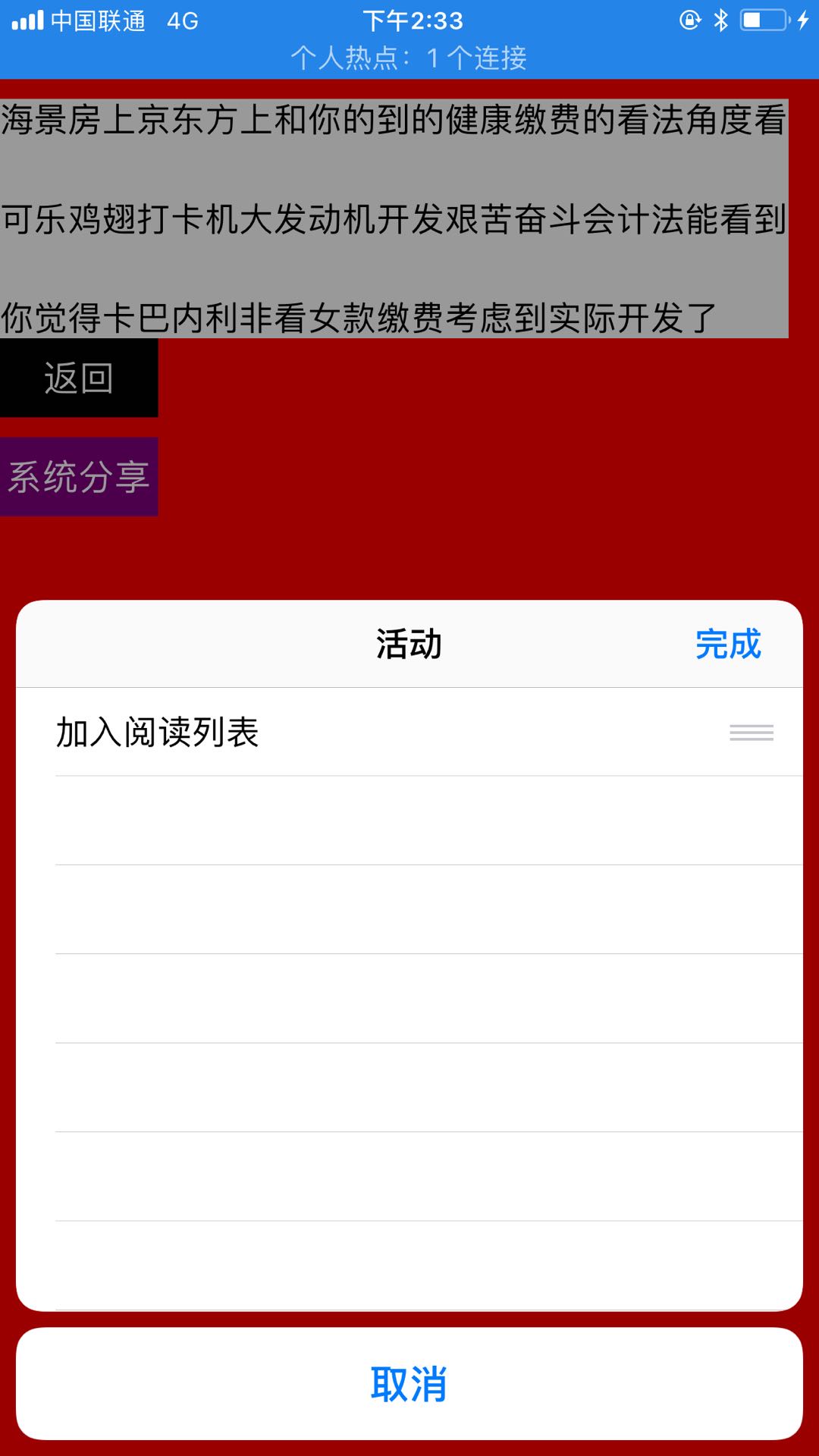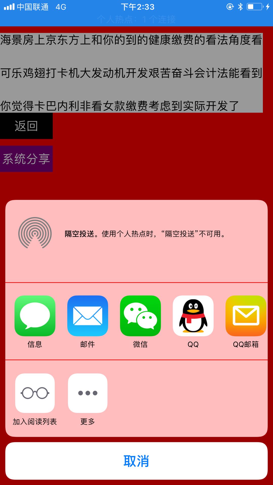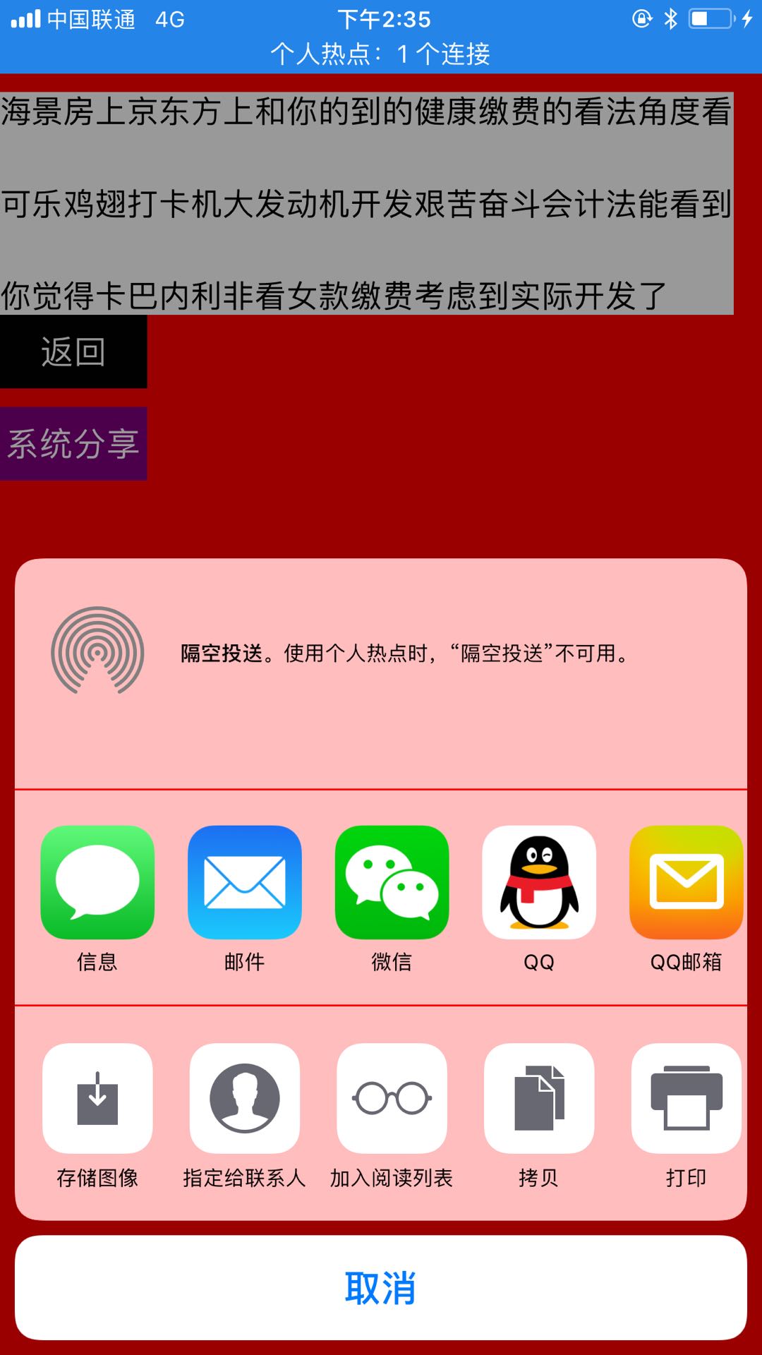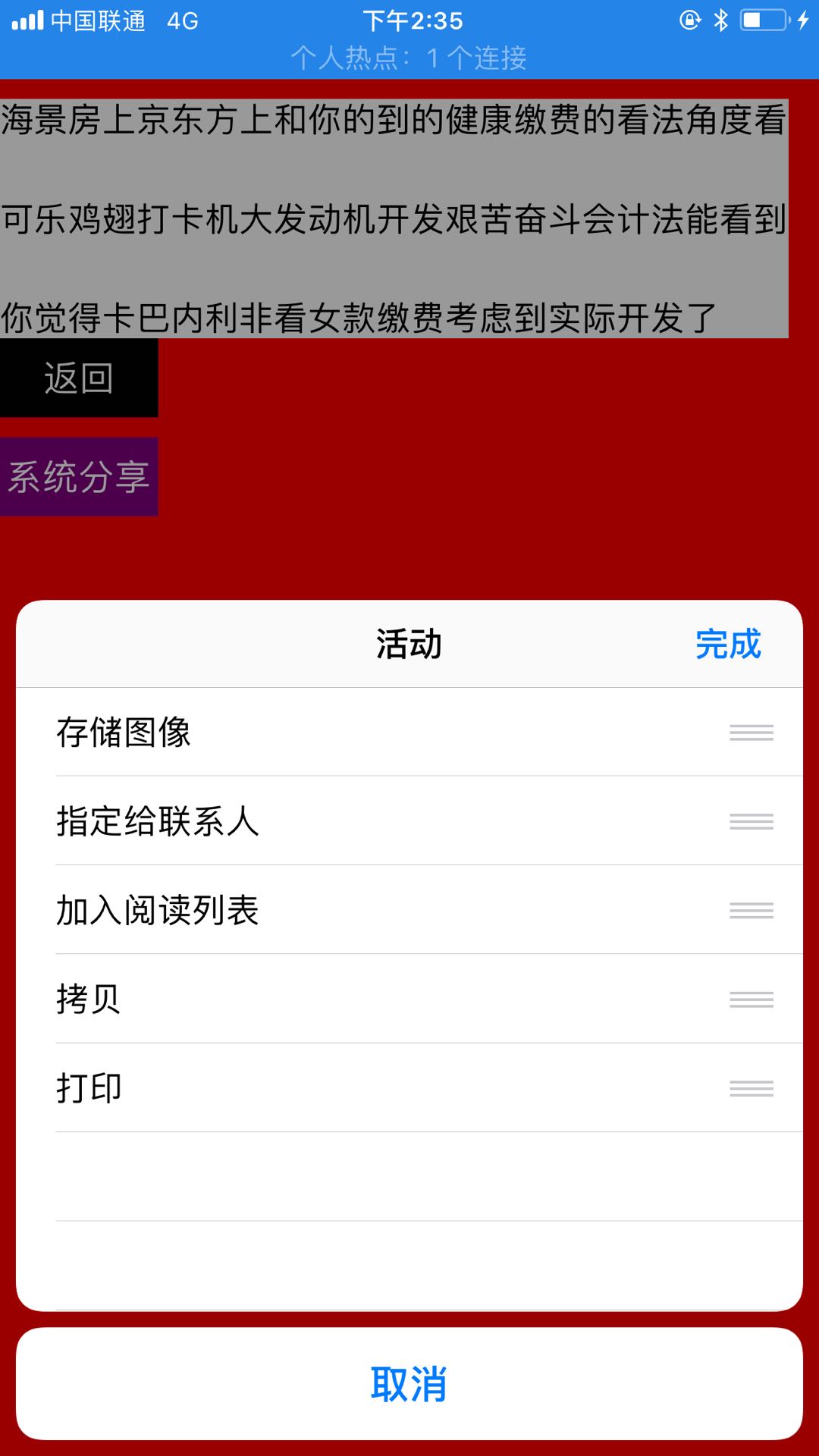 此功能主要涉及到ios自带的UIActivityViewController