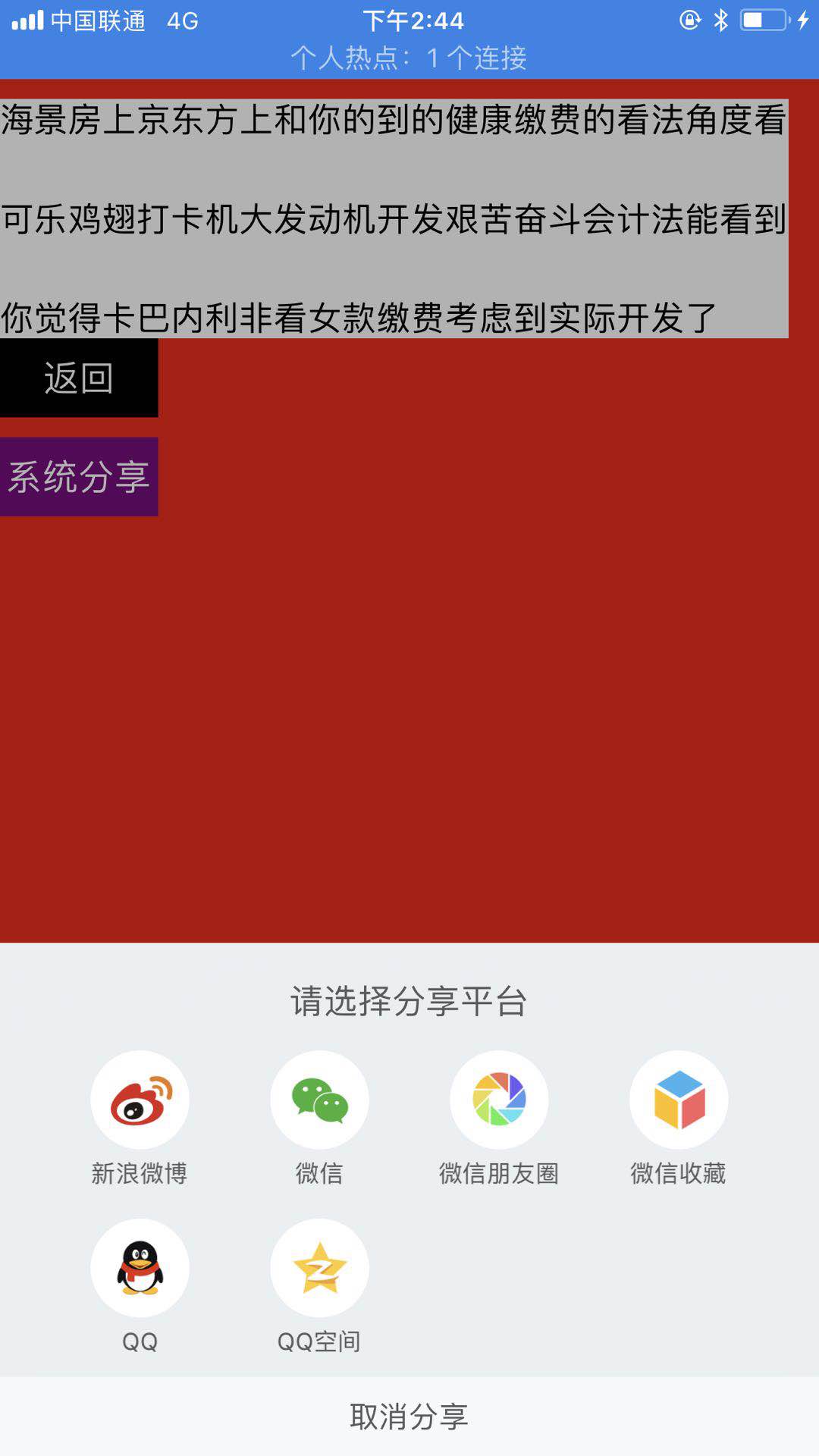 2.下边主要说说系统自带的分享功能::