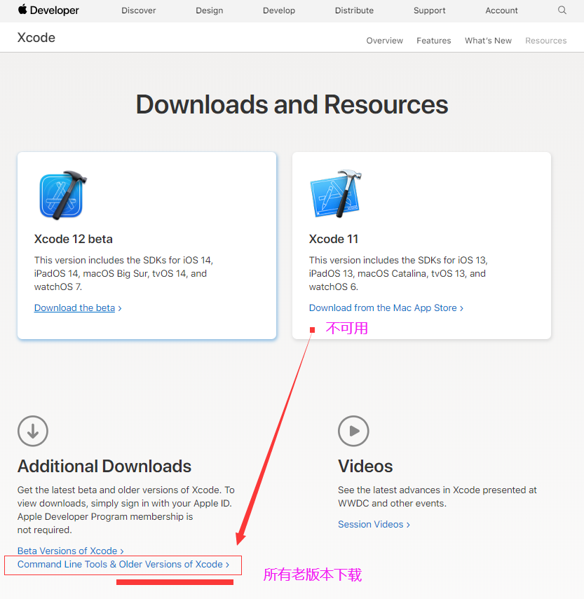 签署你的iOS、macOS、tvOS和watchOS应用程序的开发版本。在开发者账户中心官网上,用于Xcode 11或更高版本(现目前12Beta) , 下载历史版本: