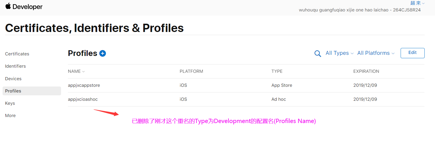 5.1、用文本备份你之前过期的App ID对应的配置文件(以备下面重构时再次使用),并删除之前过期的App ID的配置文件