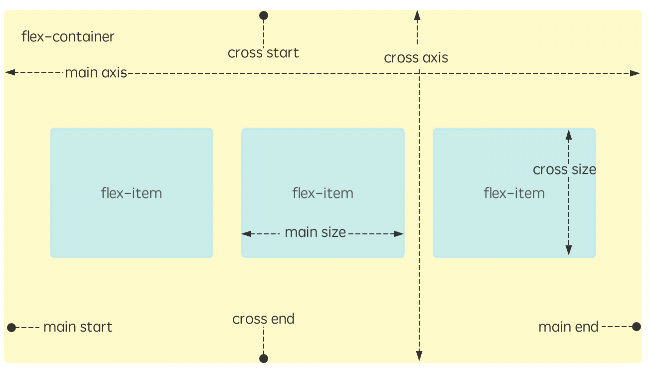 cross axis 是交叉轴,该轴的开始为 cross start,结束为 cross end。