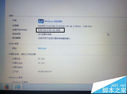 11、开机,查看电脑属性,这时候电脑内存变成8G了