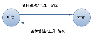 把一段原始数据通过某种算法处理成另一种数据(原始数据为明文,处理后的数据为密文)。明文----->密文 称之为加密;密文---->明文 称之为解密;