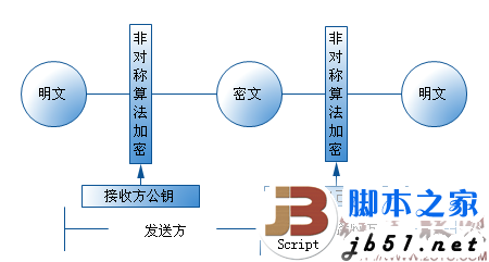 从图中看到,发送发和接收方使用的不是同一个密钥,发送方使用接收方的公钥进行加密,接收方使用与之配对的私钥进行解密。整个传送过程中,加密后的数据只用接收方自己可以解密,因为只有他自己拥有私钥。上面也介绍过,此种加密的耗费时间长,并不是一个理想的加密方式。