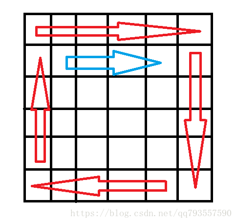 从上图我们可以发现,顺时针访问矩阵这个过程是从矩阵的外到内,一圈一圈地访问过去,直至访问完全部数值。然而这个过程是无法使用任何高效算法或者利用某个数据结构可以简单解决。我们可以做的是如何能够简单易解地去解决这个问题。