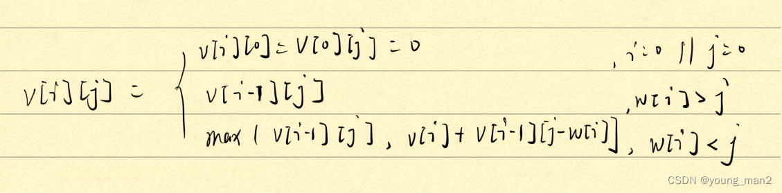 对于0-1背包问题,我们设数组v[i][j],表示我们所求的价值