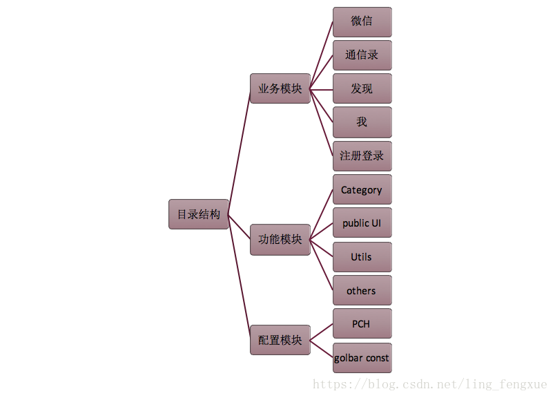 业务模块:项目内有有几大业务模块就分几类,绝大部分项目都可以按照tabbar来划分业务模块,然后增加注册登录等,这就构成了业务模块,对每个业务模块采用MVC模式.