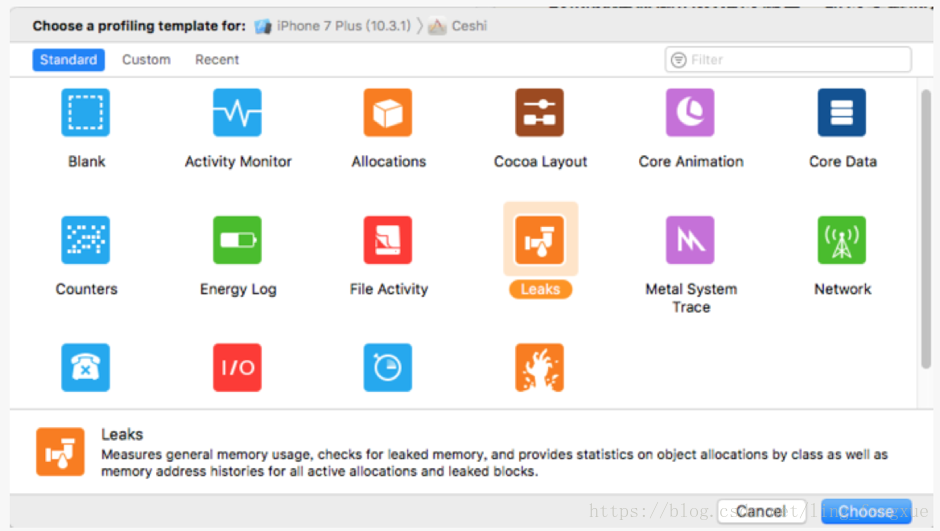 利用instrucment的leak来检测是否存在内存泄露等问题;