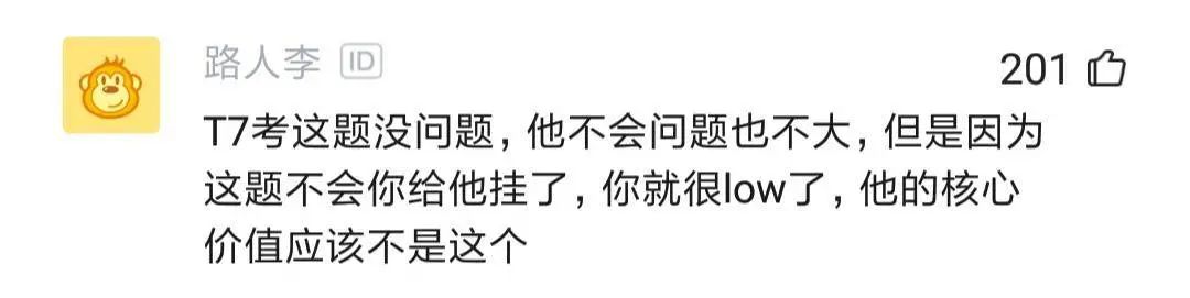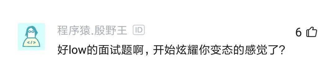 楼主本想嘲弄一下百度T7的代码水平低,没想到网友们炸开了锅,纷纷diss他出的这道题毫无意义,这样面试只能招到应付考试的人,错过合适的人选。一句话,面试官水平太低!