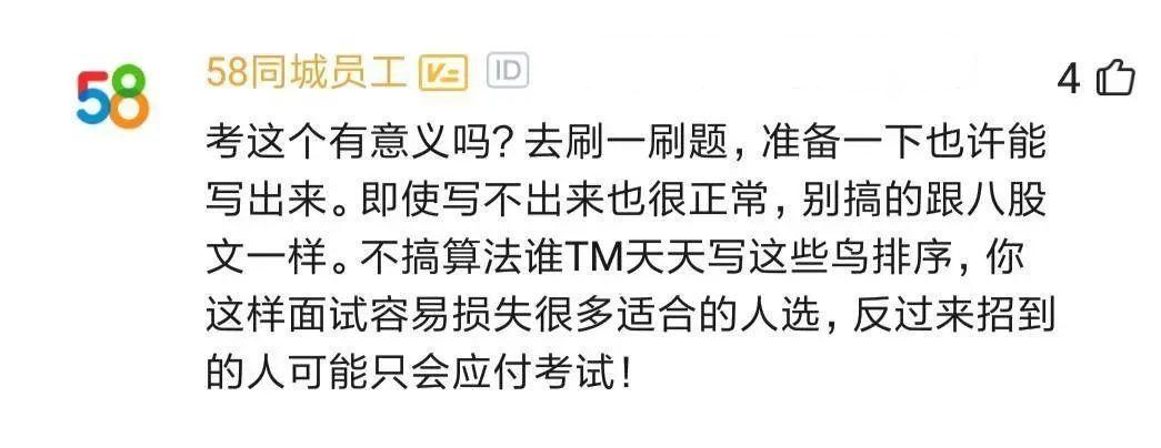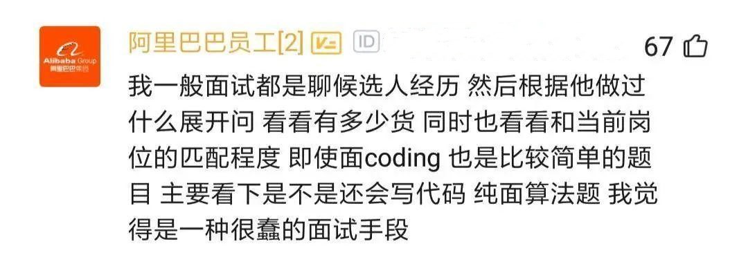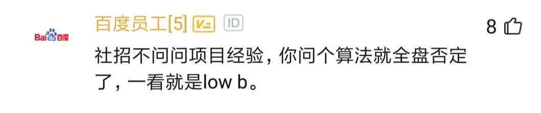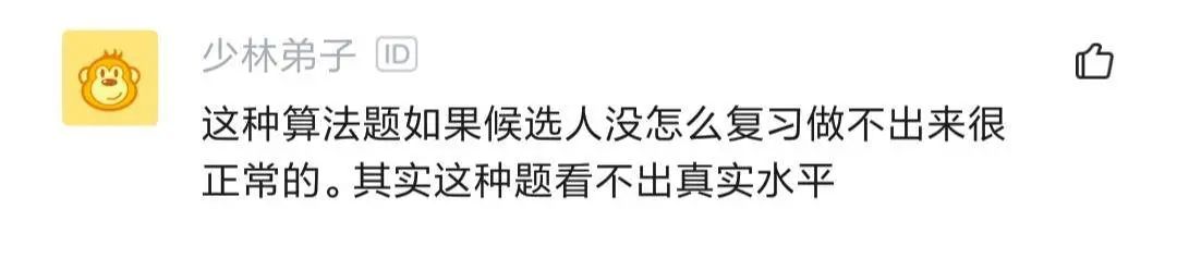 以上就是天真嚓茶最近收集整理的关于面试一个百度T7程序员,一道简单的题没答上来!网友却都在吐槽面试官!的全部内容,更多相关面试一个百度T7程序员,一道简单内容请搜索靠谱客的其他文章。