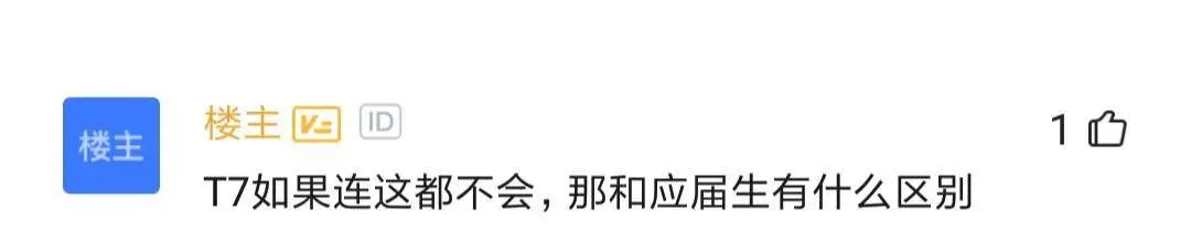 楼主很不服气,回怼:T7连这个都不会,和应届生有什么区别?
