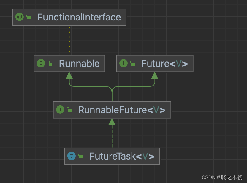 - 同时实现了Runnable接口和Future接口的类,既可以当做表示异步计算结果的Future对象,又可以当做普通的Runnable对象