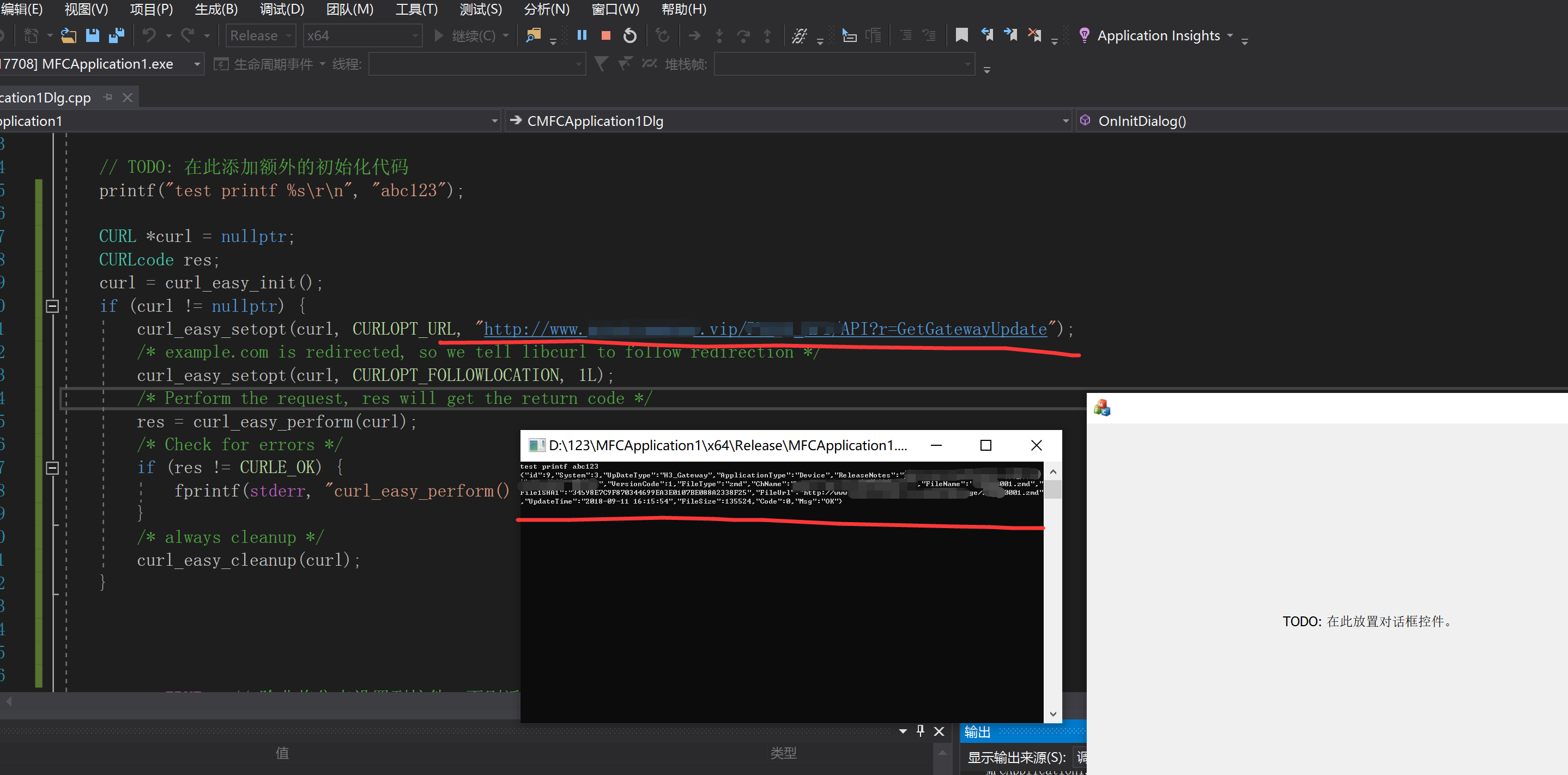 编译运行后如下图,请求的是我们公司网关固件更新信息API,也可以直接请求百度,CSDN等网址来测试