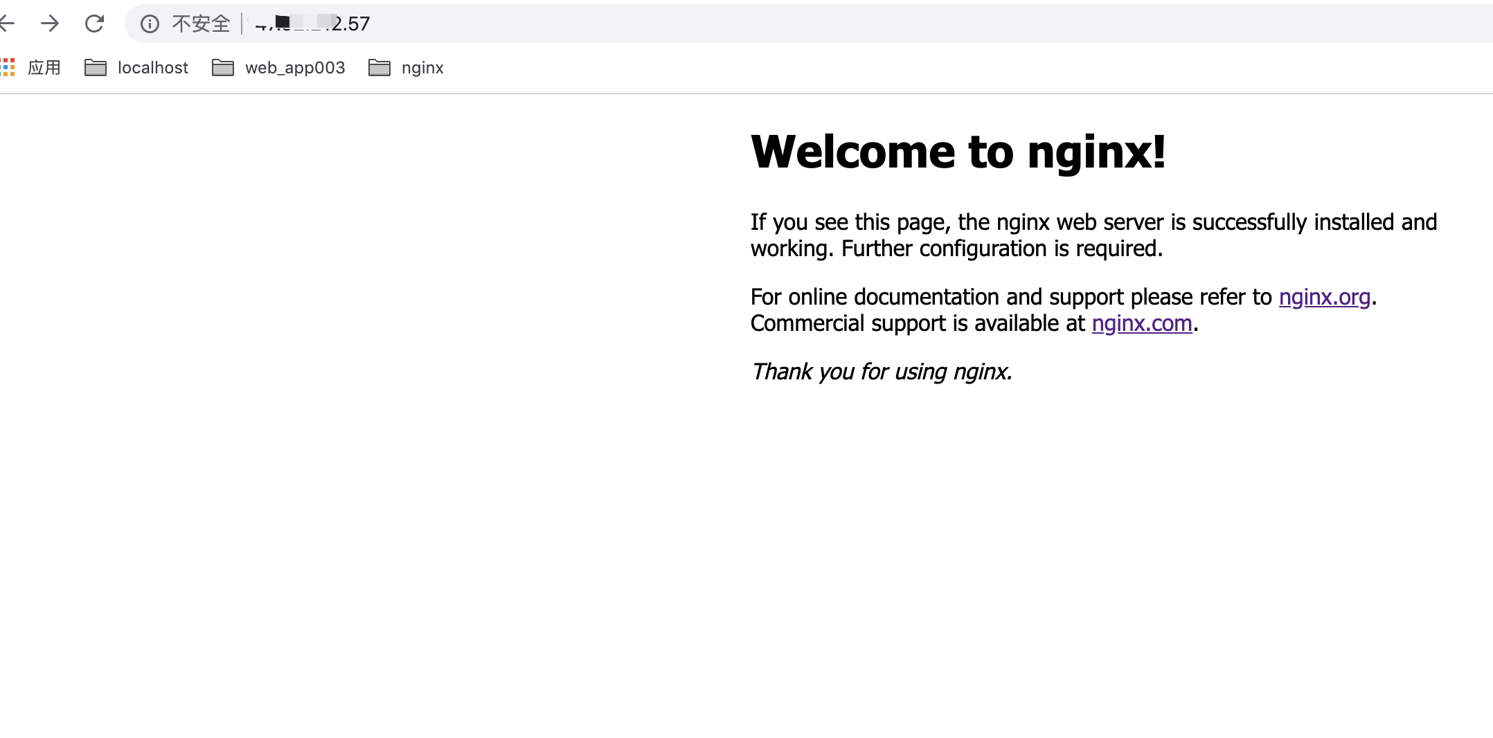 输入阿里云地址,使用默认端口访问:http://x.x.x.57:80,出现以下界面