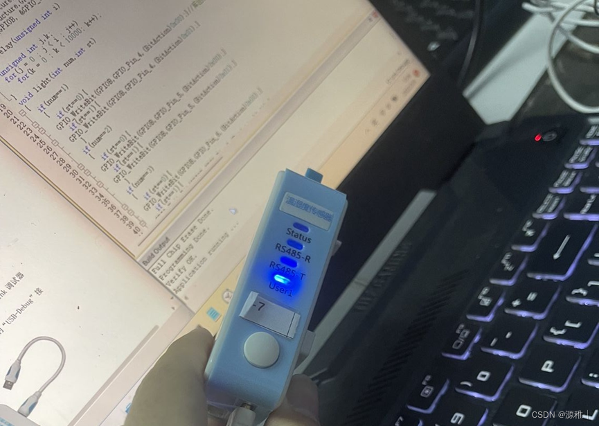程序成功运行后,将可以看到Status、RS485-R、RS485-T、User1 四个指示灯轮流闪烁。