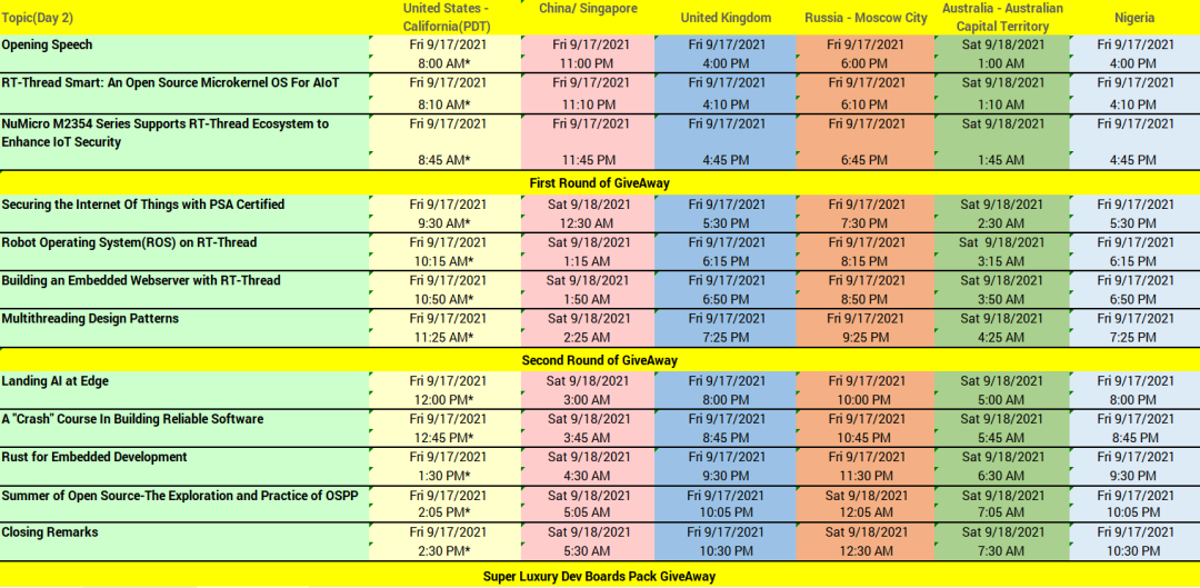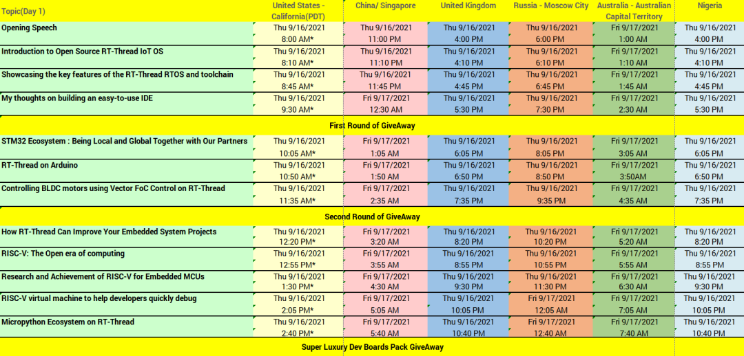 赠送的开发板将有:STM32 Nucleo boards and discovery kits, WCH-CH32V103, CH32V307, Bluetrum-RISCV Based AB32VG1, RT-Thread-Art-Pi.