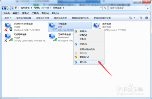 3、找到本地连接右击选择属性,之后在网络选项内的下拉菜单内找到Internet协议版本 4(Internet协议版本 6不需要更改,国内一般不用),双击打开