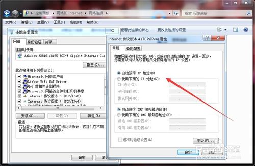 4、打开之后可选择自动选择IP地址或使用下面IP地址,后者可自己设置IP地址、子网掩码、网关;下面DNS服务网址方法同上