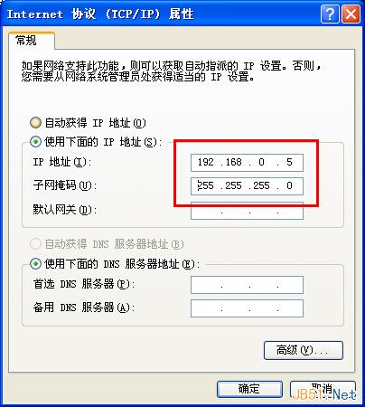5.打开后将ip地址设置为192.168.0.X(X为 1-255之间任一值),子网掩码可设为255.255.255.0;如下图所示: