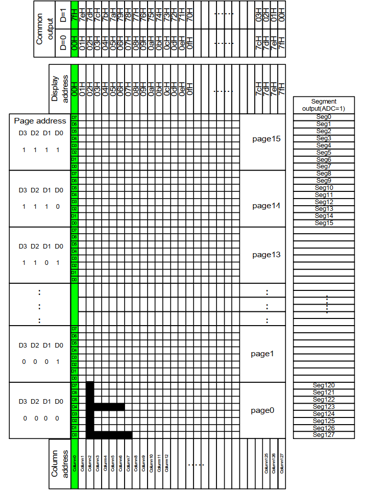 ② SH1107具有128列,即Column0-Column127,也就是0-7F