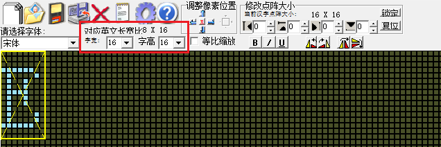 (2) 当Char_Size==16的话选择8x16字体,这里需要对字体长宽比进行了解,使用的取模软件是PCtoLCD2002: