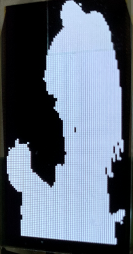 在第一页的第16列写入全高电平,也就是将第16列的D7-D0写入11111111,将这八位对应的像素点全点亮,如下图(左边为OLED屏第16列被点亮的八个点,右边红框是对应的显示地址列表里的第16列):