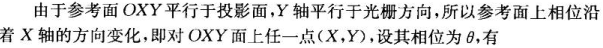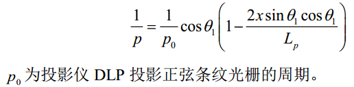 这里的是光栅节距,是光栅投射到参考平面后,在参考面上沿着X轴方向,相位变化一个周期(2