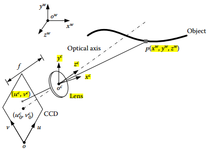 相机的针孔模型如下图:
