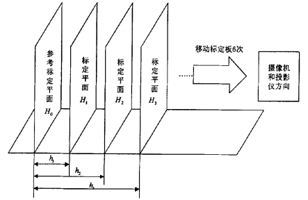 如下图所示,多次移动标定平面,得到多组标定平面的移动距离即高度h和相位差,再利用最小二乘法解出常数h0,C。
