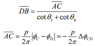 上式中p是投影仪投射到参考平面上的正弦条纹光栅的周期。为参考平面上C点的相位,