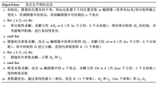 相机的内参和畸变标定还是用张正友的标定方法,伪代码如下: