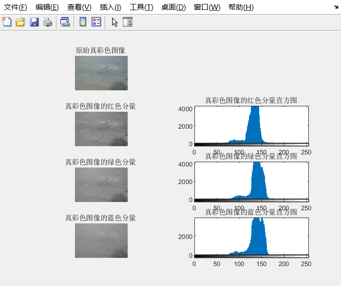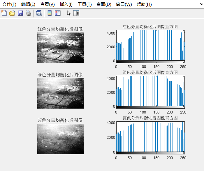 r=histeq(R); %对个分量直方图均衡化,得到个分量均衡化图像