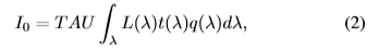 式中,t为曝光时间,A为有效面积,U为调制函数,λ为波长,L(λ)为入射光谱辐照度,t(λ)为透射率,q(λ)为光电转换函数。我们考虑两种主要的噪声:热噪声和散粒噪声。实际释放的电子I*应表示为:
