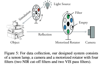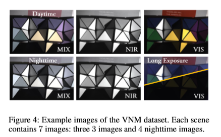 我们提出了一个新的数据集,它包含了对齐良好的VIS图像、NIR图像及其混合图像。据我们所知,这是第一个此类真实数据集,可以认为是我们在本文中的主要贡献之一。这种VIS-NIR-MIX数据集可以指导VIS和NIR信号从它们的混合图像中分离出来,从而使我们的成像模型的训练成为可能。