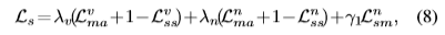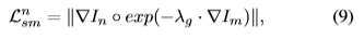 式中,Lma,Lss,λ表示mae、ssim值和系数。Lnsm定义为: