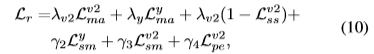 其中v2和y代表RGB和YUV颜色空间中的输出,Ly sm和Lv2 sm是由近红外信号引导的亮度和可见光信号的平滑约束(类似于公式9),γ2、γ3和γ4是系数,Lv2 pe是感知损失,定义可在(Johnson,Alahi,和Fei Fei 2016)中找到。实验中参数的配置为:α=1,β=1,λn=λv=λv2=λy=100,γ1=0.1,γ2=5,γ3=1,γ4=100,γg=10。