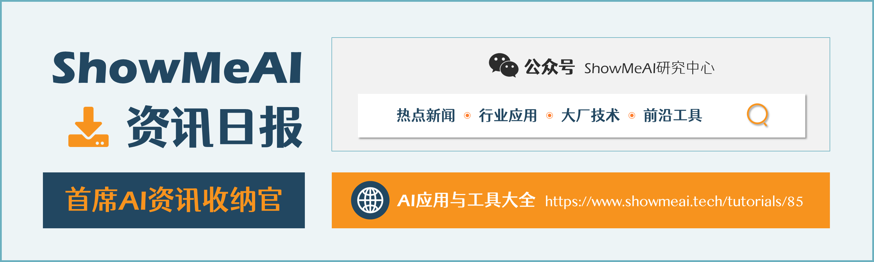 ◉ 公众号 ????ShowMeAI研究中心 回复关键字 日报,免费获取独家AI发展趋势报告、原创AI专题资料合辑,一览AI技术发展前沿,捕捉有价值的业务应用案例!