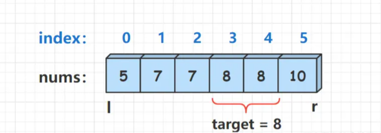输入:nums = [5,7,7,8,8,10], target = 8
