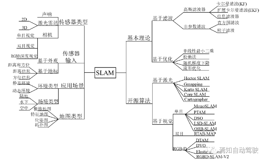 SLAM 是一个庞大的理论体系,涉及传感器处理、贝叶斯滤波、非线性优化、地图的表示、图形处理等各方面的相关理论。早期 SLAM 的基本理论是以扩展卡尔曼滤波(Extended Kalman Filter,EKF)为代表的滤波方法为主。