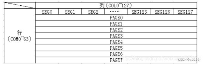 oled的数据存放模式,OLED本身是没有显存的,它的显存是依赖于SSD1306提供的。SSD1306的显存总共为128 * 64bit大小,SSD1306将这些显存分为了8页。每页包含了128个字节,总共8页,这样刚好是128*64的点阵大小。
