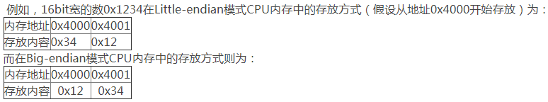 b) Big-Endian就是高位字节排放在内存的低地址端,低位字节排放在内存的高地址端。