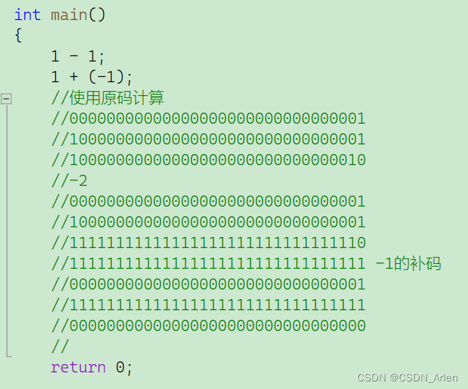 可以观察到1和-1的原码首个数字是不一样的,其实首个数字是符号位,0代表正数,1代表负数。负数的反码是除了符号位其他按位取反,补码是反码加1。内存中显示的是补码。这个是因为方便进行运算,因为内存中是进行加法运算的1-1其实算起来是用1+(-1)的,这个时候就是俩个补码之间进行加。(这是个题外话,可能描述的不太精确)我就不展开讲了,可以自行看图理解。
