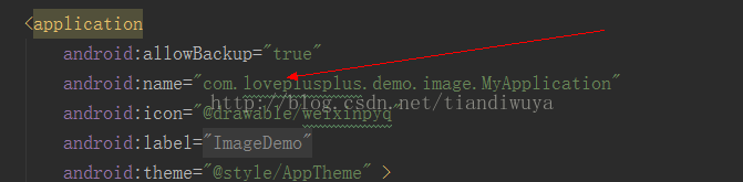 public class MyApplication extends Application { @Override public void onCreate() { super.onCreate(); DisplayImageOptions defaultOptions = new DisplayImageOptions .Builder() .showImageForEmptyUri(R.drawable.empty_photo) .showImageOnFail(R.drawable.empty_photo) .cacheInMemory(true) .cacheOnDisc(true) .build(); ImageLoaderConfiguration config = new ImageLoaderConfiguration .Builder(getApplicationContext()) .defaultDisplayImageOptions(defaultOptions) .discCacheSize(50 * 1024 * 1024)// .discCacheFileCount(100)//缓存一百张图片 .writeDebugLogs() .build(); ImageLoader.getInstance().init(config); } }清单文件中修改
