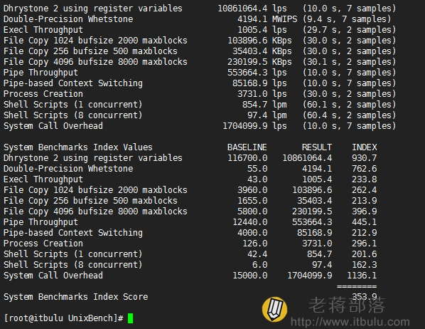 5、UnixBench跑分测试