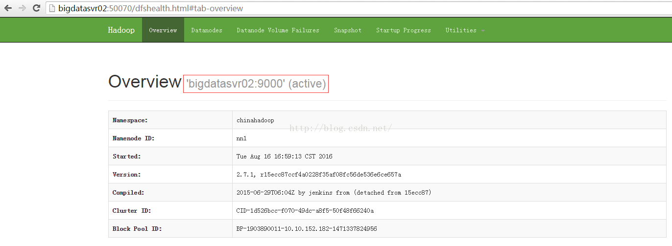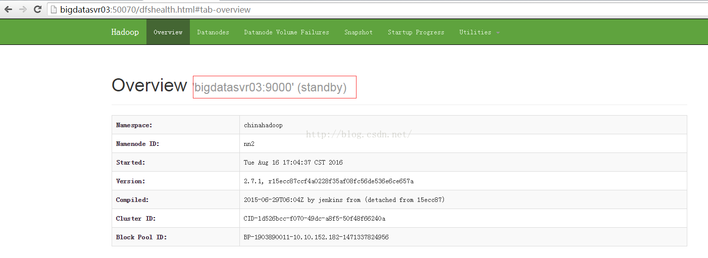 在浏览器上访问http://bigdatasvr02:50070/ 当前是 standby 状态