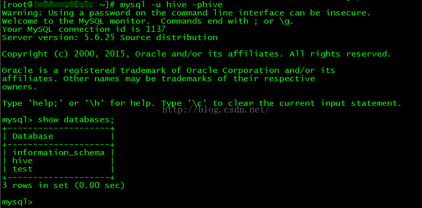 grant all on hive.* to hive@'localhost' identified by 'hive';