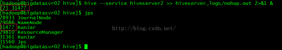 hive --service hiveserver2 >> hiveserver_logs/nohup.out 2>&1 &