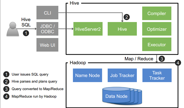 • HiveServer2 is a gateway / JDBC / ODBC endpoint Hive clients can talk to.
