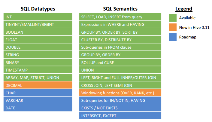 • New Join Types added or improved in Hive 0.11: